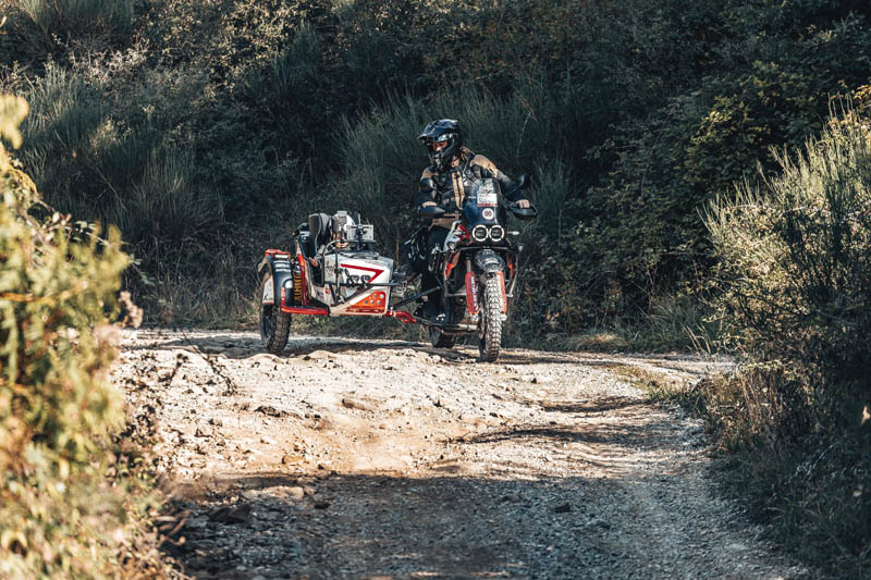 O sidecar também estava equipado com as bolsas da linha Canyon da GIVI, uma gama altamente resistente e impermeável, pensada para enfrentar tanto viagens off-road exigentes quanto longos trajetos acompanhados, garantindo confiabilidade e praticidade em qualquer condição.