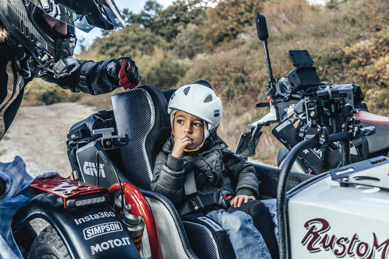 Para realizar esse desejo, Davide participou da Transitalia Marathon a bordo do primeiro Ducati DesertX Rally Sidecar do mundo, projetado e construído pela VFR Tech e Rustom com a colaboração técnica da GIVI. Este veículo único foi estudado para oferecer segurança, estabilidade e a possibilidade de viver a aventura de forma completa e envolvente.